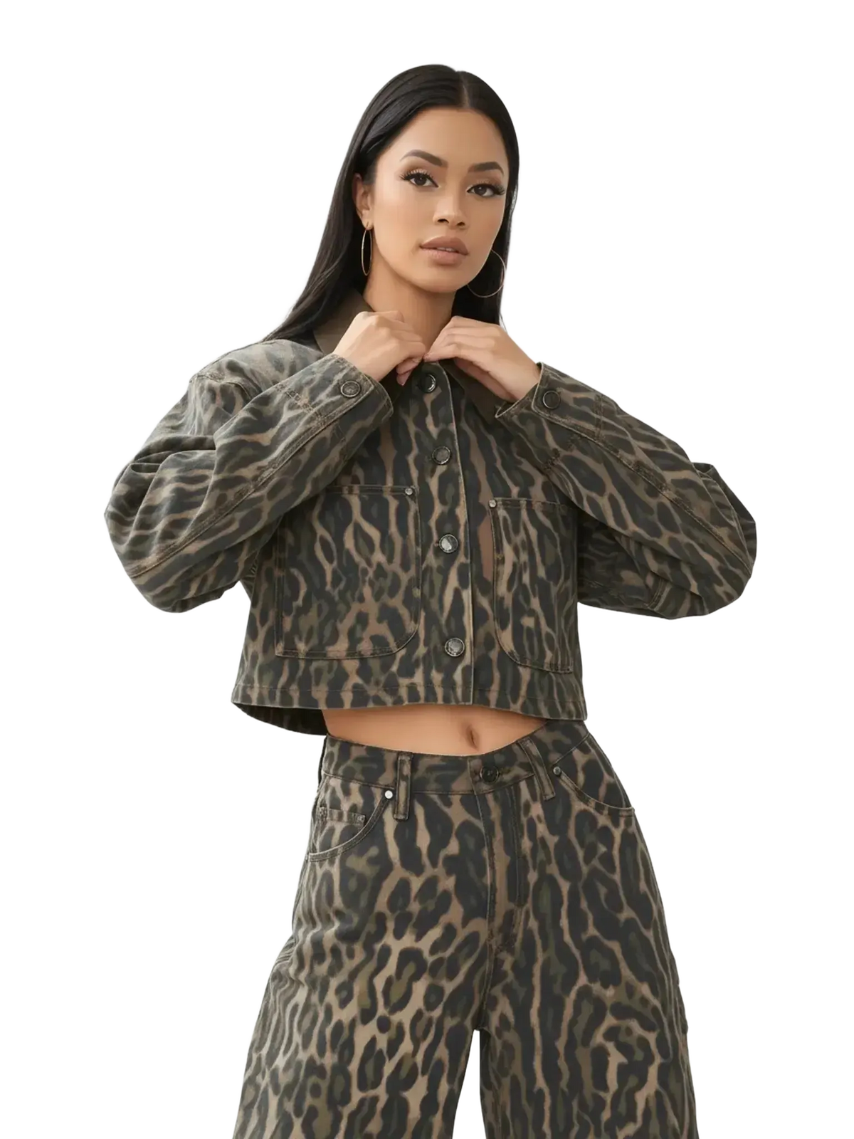 AFRM brings intention to outerwear with Wrenley Camo Leopard Jacket, featuring structured denim construction that balances form and function.